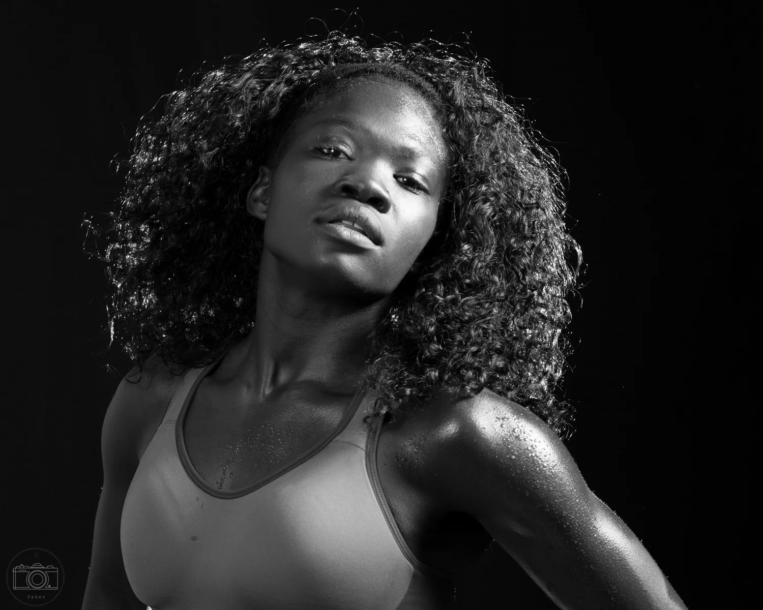 I wanted to do a shoot with a fitness model, to try to capture not only the appeal of the model, but also the effort and determination required to become strong.  I had in mind one of those sweaty, black and white type shots you see on Sports Illustrated covers from time to time.